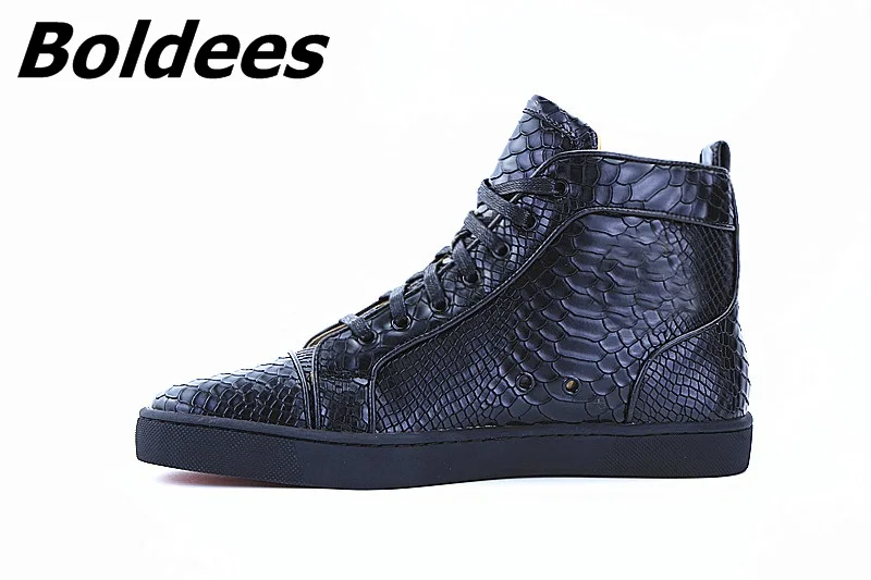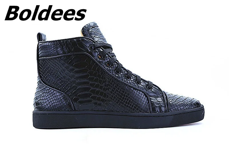 Boldees Men Tennis Sportswear Luxury Brand Spring Autumn Flat Shoes Mens Black Snake Print High Top