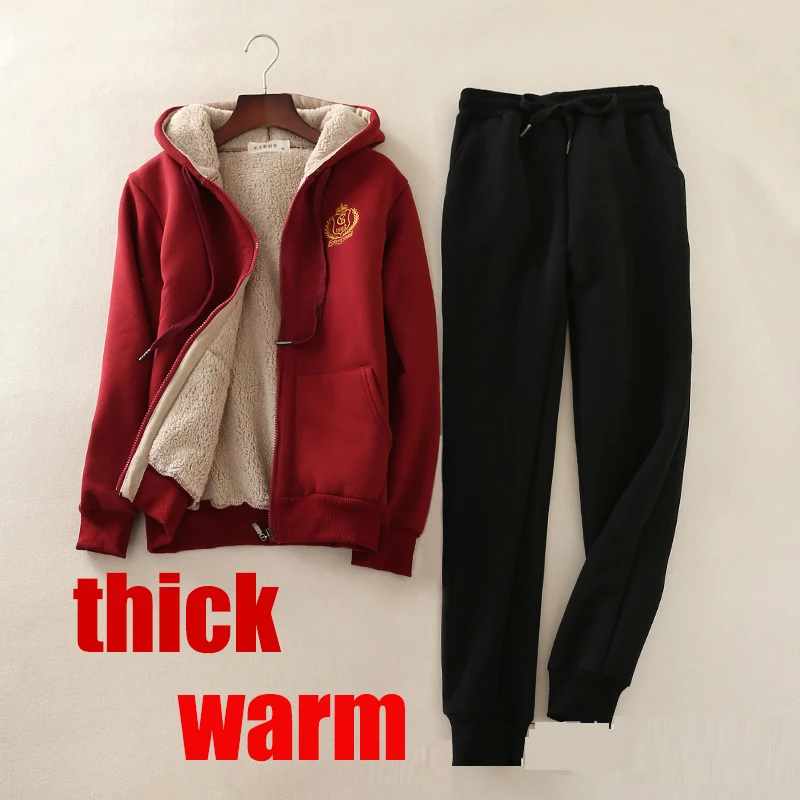 REVIEW TOP SELLER women casual winter suits Autumn 2 Piece Set Women Lamb hooded Sweatshirt+Pants Suit thick warmTrac