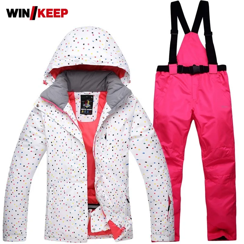 BEST SELLER Top Brand Women Outdoor Skiing Set Hoody Dot Printed Warm Snow Sportswear Suits Windproof Waterproo