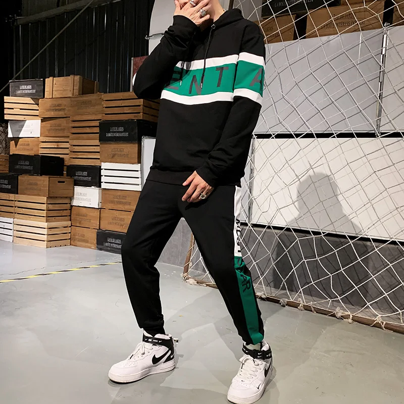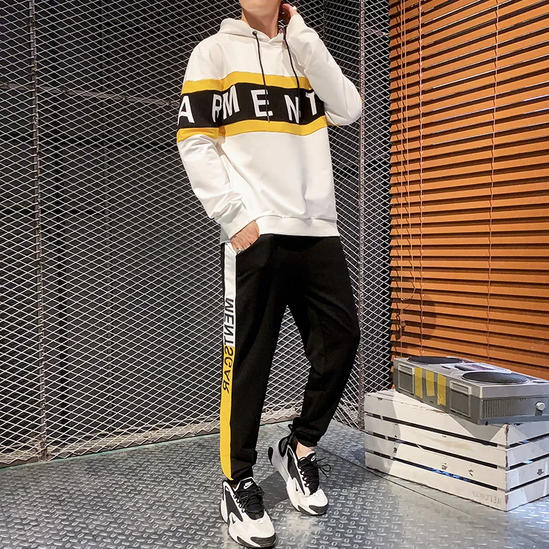 Men's Casual Sports Suit Hooded Fashion Autumn Sweat Men 2 Piece Long Sleeve Set Sportwear Hommes H