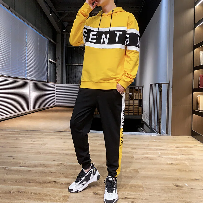 Hot Sale Men's Casual Sports Suit Hooded Fashion Autumn Sweat Men 2 Piece Long Sleeve Set Sportwear Hommes H