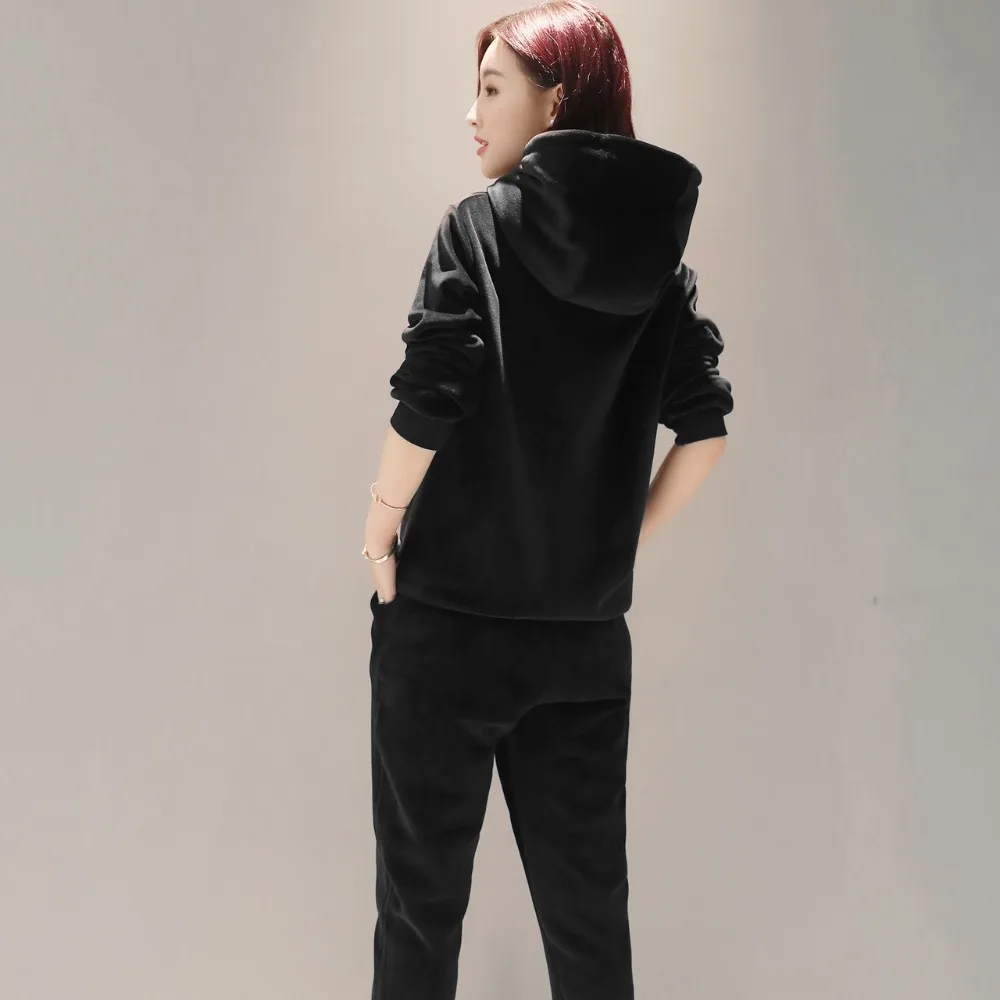 HOT SALE Velvet gold velvet sports suit female two-piece casual sportswear Large size 3XL thicken Plus velve